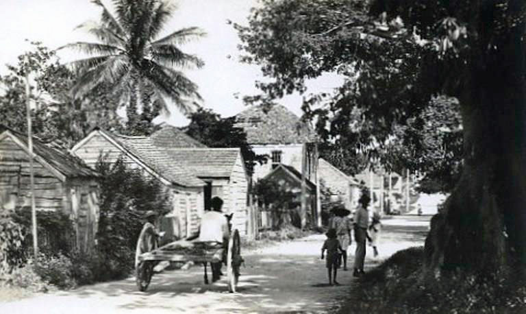 Generally speaking, a reference to “ova-da-hill”, as a means of identity, was a method of describing the background and social strata of those who lived south of the hill, between Nassau Street on the west, and Collins Wall on the east. Within those boundaries were contained the huddled bulk of the black community of the Island. The area was densely crowded, both with its residents as well as their petty shops, barber shops, cafes, bar rooms, tailors and dressmakers, hairdressers and road-side fruit stands. All the houses were small wooden dwellings, seldom more than two bedrooms, plus a dining room and a “front room” or “parlour”, but there was always also a porch on the front, which was the family’s communal area every evening after work or school.